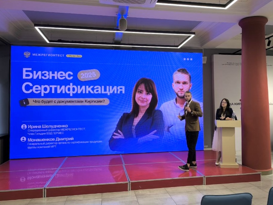 Специалисты «МЕЖРЕГИОНТЕСТ» выступили с докладом о современных вызовах в области подтверждения соответствия. Эксперты осветили актуальные вопросы рынка сертификации, включая перспективы работы с документами Киргизии, предложили практические решения и рассказали о применении искусственного интеллекта для оптимизации процессов в этой сфере.